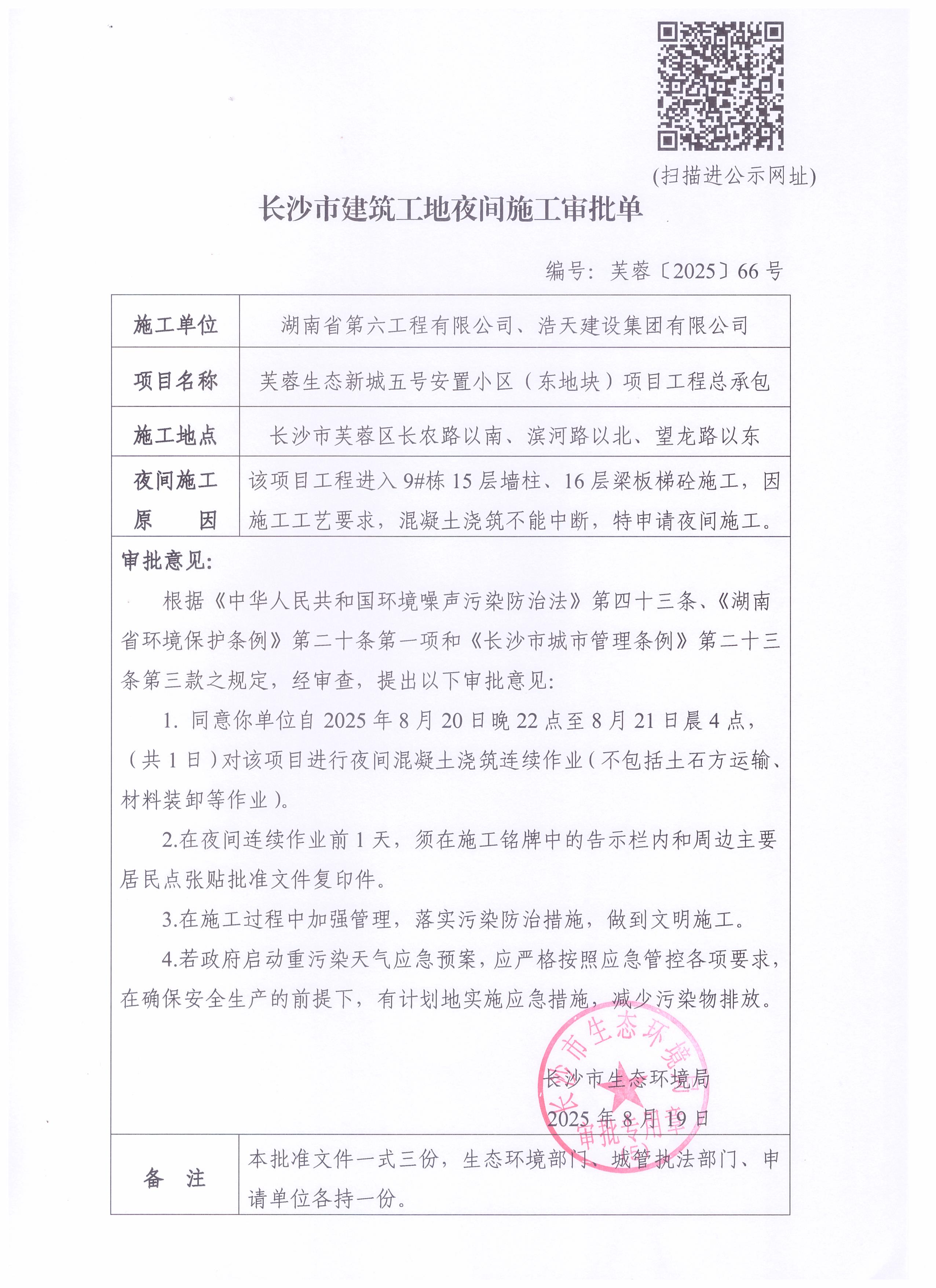 长沙市建筑工地夜间施工审批单 芙蓉[2025]66号.jpg