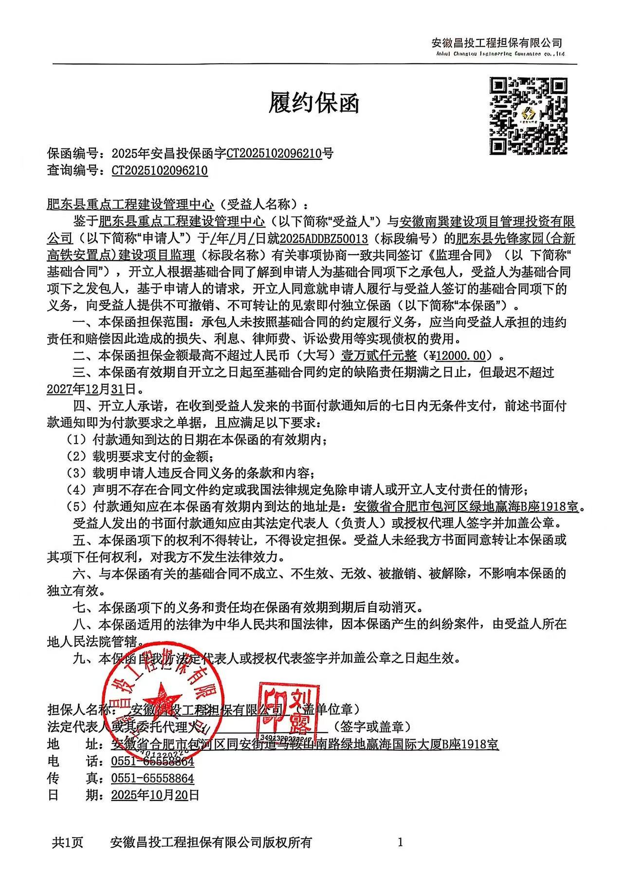 履约保函.jpg 肥东县先锋家园(合新高铁安置点)建设项目监理—中标通知书.pdf 肥东县先锋家园(合肥高铁安置点)建设工程监理合同.pdf
