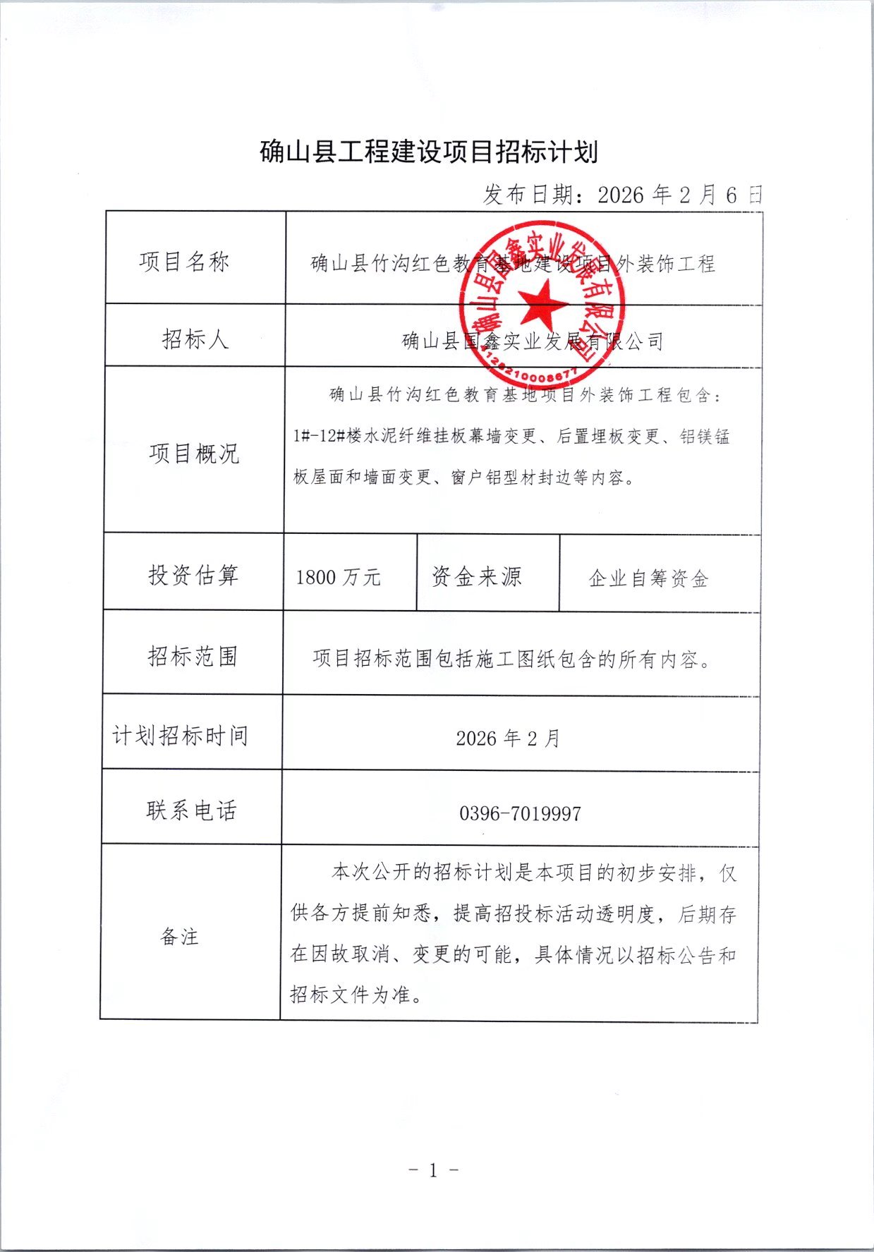 备注 | 本次公开的招标计划是本项目的初步安排,仅 供各方提前知悉,提高招投标活动透明度,后期存 在因故取消、变更的可能,具体情况以招标公告和 招标文件为准。 | ||